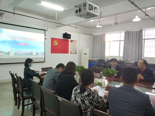 近日,医学院在浔东校区华文楼会议室召开非医学背景教师座谈会,院长车向新教授、副院长向维聂教授以及2017年以来新进的12位教师参加了此次会议,会议由教学科研管理科副科长林玲主持。