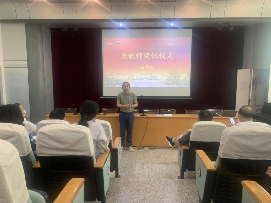仪式上,退休老师们先后发言,深情回顾了自已的工作经历,畅谈在医学院工作的点点滴滴。他们表示在医学院工作这么多年,收获的不仅仅是认可和感恩,更有家的温馨和亲人的关怀。他们话语中饱含了对教育事业的热爱和对学院的感激、难舍之情,他们表示将离岗不离党,继续关注学院的发展。