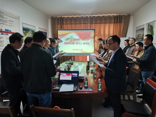 为深入学习贯彻党的十九届六中全会精神,11月17日下午,医学院赴yl23455永利集团新校区开展主题党日活动,同时召开党委理论学习中心组(扩大)学习会,参加本次活动的有党委书记许晓源,学院党委委员,各党支部书记以及职能部门负责人。