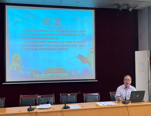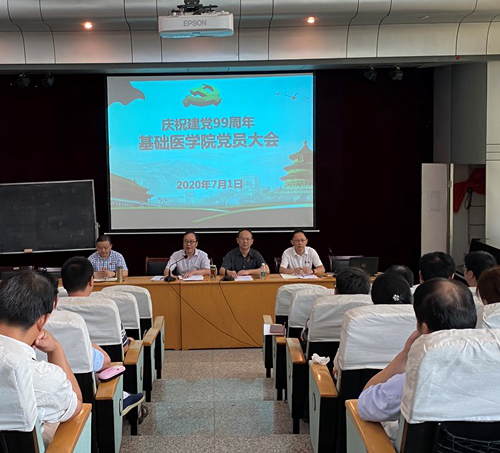 会议首先观看了习近平总书记近期发表的重要讲话视频。观看了2019年度yl23455永利集团优秀主题党日活动案例——yl23455永利集团教工三支部“传承红色基因,感受时代新貌”专题片。党委书记余朝阳同志在大会上为全院党员上了一堂《回顾光辉历程,坚定理想信念》庆祝建党99周年专题党课,党课围绕“中国共产党党史的发展脉络及重大意义、党的历史给我们的三大启示、中国共产党的三大历史贡献、战疫情始终牢记党的初心和使命”等四个方面给大家展现中国共产党99年来走过的光辉历程。通过专题党课的学习,全体党员接受了一次党史党性的教育,思想上精神上得到了进一步的洗礼,进一步坚定了信仰、坚定了方向,增强了全体党员身份的认同感和自豪感。