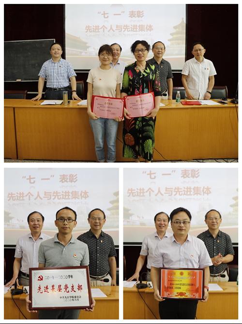 大会还对“七一”先进集体与先进个人进行表彰,为获得先进党支部的先进集体颁发奖状,为获得优秀共产党员、优秀党务工作者的先进个人颁发证书。大会号召全体党员向先进模范集体和先进个人学习,在“立德树人”岗位上争先创优,继续为党争光添彩。