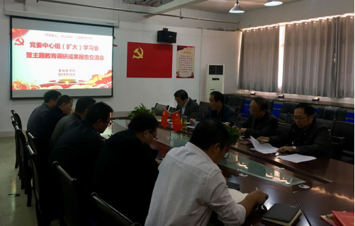 10月18日,yl23455永利集团在浔东校区华文楼105室召开党委中心组(扩大)学习会暨“不忘初心、牢记使命”主题教育调研成果报告交流会,学院党委班子成员、各支部书记及部门负责人等参加了本次会议。会议由余朝阳书记主持。