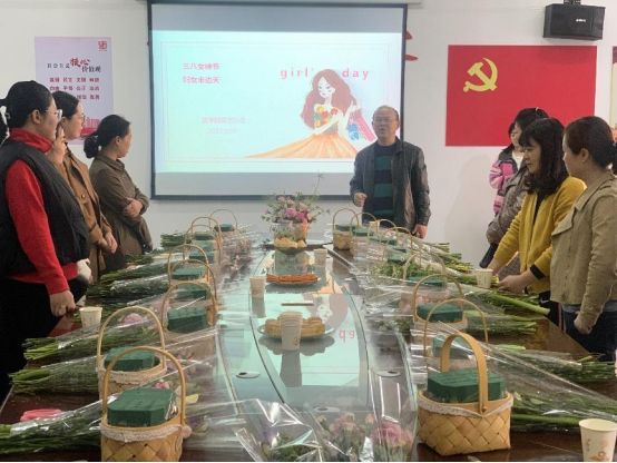 因学院场地有限,花艺沙龙分别在3月8日下午和3月9日下午分两组进行,学院党委书记许晓源和院长车向新分别到现场为女教职工送上亲切的祝福和美好的祝愿。