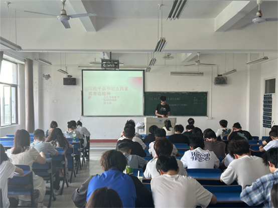 A2213班团支书在义丰楼401教室开展此次专题学习。她以“习近平总书记五四重要寄语精神”为主题,阐明作为青年的我们更应该肩负起新时代新征程中党赋予的使命任务,传承弘扬优良传统,持续贯彻落实习近平总书记重要要求,发扬五四精神。