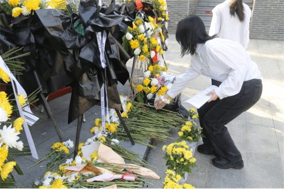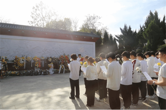 菊花朵朵寄哀思,松柏青青伴英魂。上午8点20分,同学们神情肃穆地在烈士纪念碑前整齐列队,医A2311班焦提嘉同学领诵并带领大家向烈士致以崇高的敬意。大家依次向革命英烈敬献鲜花并集体默哀,每个人都沉浸在深深的哀思中,默默缅怀那些为国家、为民族英勇牺牲的烈士们。