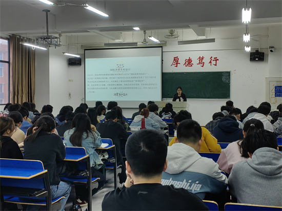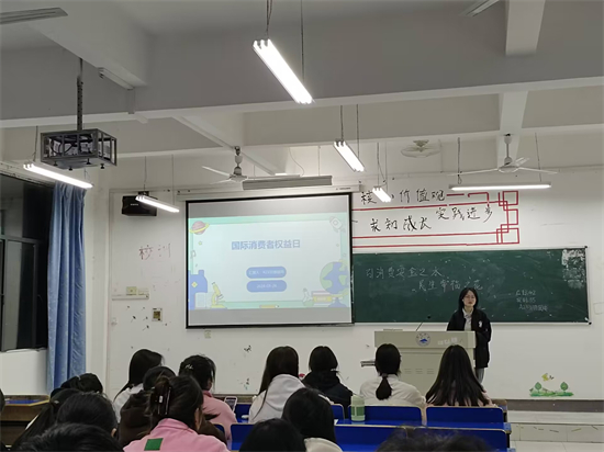 A2313班团支书在义丰楼202以PPT和视频相结合的形式来给同学们介绍关于消费者权益的知识,并着重提出当今消费者权益保护现状及挑战。随着网络购物的普及,网络消费领域的问题也日益突出,如虚假宣传、货不对板、售后服务不到位等,给消费者带来了诸多困扰,消费者权益保护刻不容缓。
