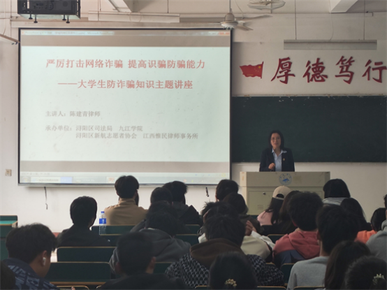 3月22日,学院特邀浔阳区司法局以及江西惟民律师事务所律师陈建青,到学院为同学们做了题为“防范网络诈骗”的专题讲座。陈建青结合一系列与大学生密切相关的案例,从网络安全法律法规、个人信息保护、网络诈骗防范等方面进行了深入浅出的讲解,并为同学们提供了实用的防骗技巧和应对策略。