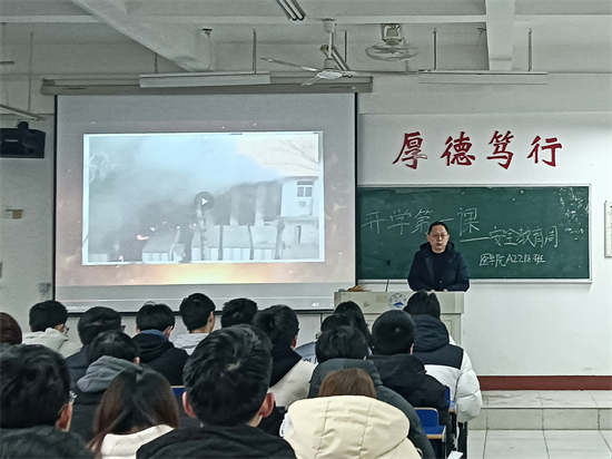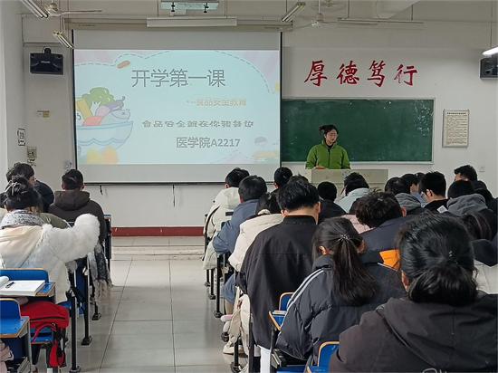 新学期伊始,基础医学院党委书记许晓源带领学院班子成员深入各班级以“开学第一课”的形式进行校园安全教育,与同学们一起增强安全防范意识,提高安全应急能力。多位院领导就春季学校火灾疏散逃生、实验室安全、宿舍安全等各类安全事故,帮助同学们深入学习安全知识,辨析常见的安全隐患以及发生安全事故时的应对方法。同时各班级结合食品安全、交通安全、心理健康等方面的典型案例视频进行了几种学习,在学习中不断筑牢个人安全防护意识。