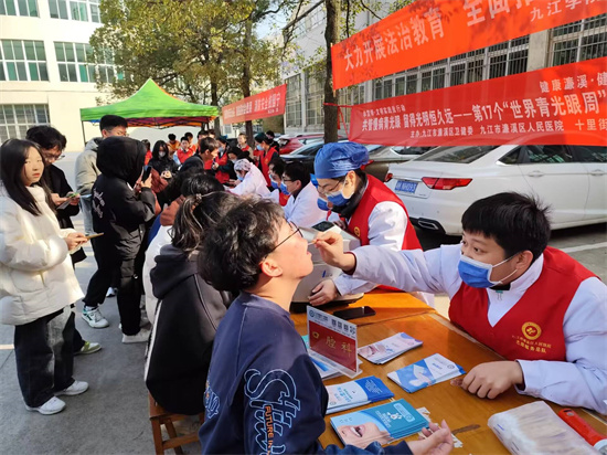 在习习春风中,志愿者们早早到达了广场进行准备工作,完成现场布置,并协助濂溪区人民医院各个科室的专家们开展今天的义诊活动。本次活动的坐诊专家分别来自濂溪区人民医院的内科、外科、眼耳鼻喉科、康复科、皮肤科、口腔科等,吸引了许多同学前来学习和问诊。志愿者们积极引导每一位前来就诊的同学进行咨询,专家们也耐心地询问同学们的身体状况,解答同学们的各种疾病问题,对其相关症状进行讲解并给予建议,帮助同学们及时了解自己的身体状况和及时预防和治疗。
