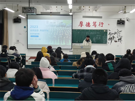 在宣传教育周期间,医学院各班以习近平新时代中国特色社会主义思想为指导,全面践行总体国家安全观,认真学习贯彻落实习近平总书记关于反恐怖工作的重要批示精神。以主题班会的形式开展反恐专题教育学习,让同学们深入了解什么是恐怖主义,辨析常见的恐怖主义袭击手段,以及发生恐怖袭击时的应对方法。同时深入开展爱国主义教育,增强中华民族共同体意识。