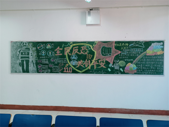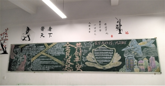 团委新媒体部发起了反恐防暴主题黑板报评比活动。各班以《中华人民共和国反恐怖主义法》、《中华人民共和国国家安全法》的内容开展法治宣传,同学们用心制作了一幅幅黑板报,充分发挥了黑板报宣传栏的良好效果。