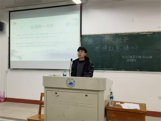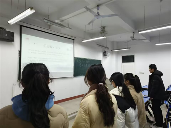 A2318班团支书在立信楼608开展此次主题活动。团支书首先为大家们展示了名家朗诵《沁园春·长沙》的视频,接着和同学们声情并茂地齐诵诗词。同学们积极上台分享心得,大家对祖国大好河山以及光辉前景发出赞叹的同时也感悟到了毛泽东同志对长沙美景的热爱和对千百岁月流转的感慨。