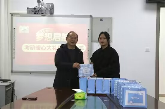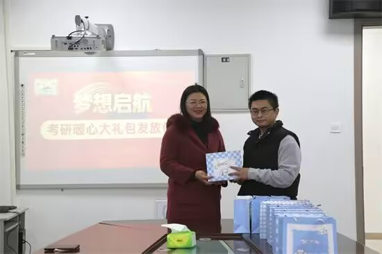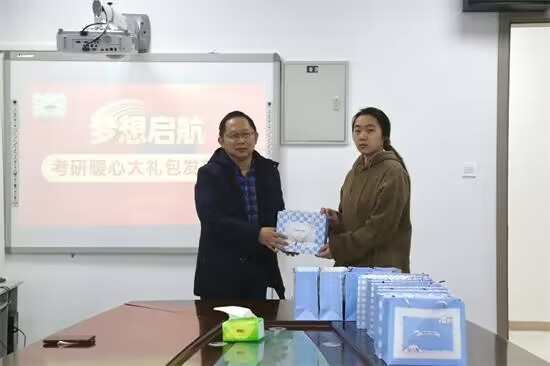最后,由院领导为学生代表们发放暖心大礼包,承载着美好与期盼的礼包寄托了医学院对学子们深深的祝福,传递的是精神的鼓舞。衷心祝愿考研学子们能够带着学院的祝福与鼓励,以不懈的动力勇往直前,再创佳绩!