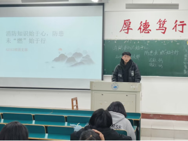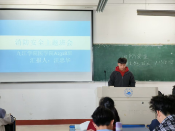 医学院大一年级各班开展了以消防安全教育和维护校园安全为主题的班会。医学A2332班副班长钟佳文同学在主题班会上讲到:“消防知识要牢记,平时预防为主,生命只有一次,要珍惜生命,保护自己的人身安全。”同学们通过观看消防安全宣传PPT、火灾自救视频,充分认识到校园生活中消防安全隐患的危害,增强了大家的消防安全意识、主动参与意识和应对火灾等紧急状况时的应急反应能力,为共建平安校园奠定了坚实基础。