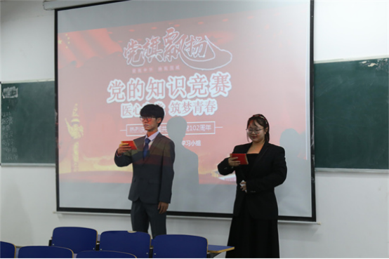 为深入学习贯彻党的二十大精神与习近平新时代中国特色社会主义思想,促进医学院全体学生进一步学习党的基本理论知识,医学院于11月9日在香远楼602教室举办了“忆初心,强党性” 党的知识竞赛。医学院党委副书记刘频健、学生科科长陈文雯、学生思政科副科长樊云燕出席本次活动。