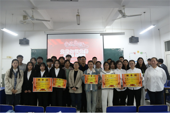 比赛设有多项奖项。其中,第二小组陈萍、占文婷、鲁子瑜、张莹莹团结合作,凭借充足的党的知识储备荣获一等奖;第一组肖鹏辉、卢钰佳、黄金凤、陈思予荣获二等奖;第三组习佳鹏、袁文广、赵书伟、熊卓奕荣获三等奖;于文青、裴雄川、徐红霞、张艳艳荣获“优秀答题人”称号,此外每位参赛同学都获得了精美小礼品。