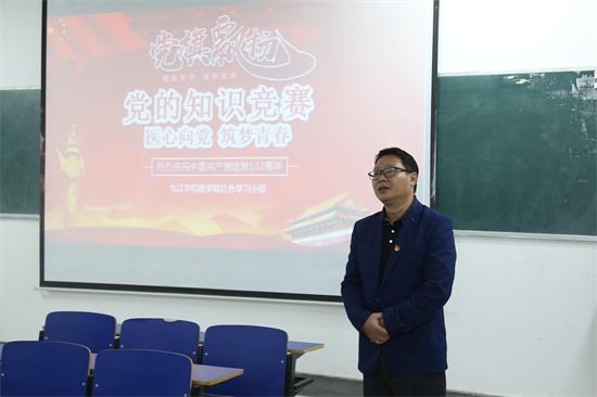 比赛结束后,刘频健做出总结,鼓励医学院学子们应当积极学习党的理论知识。他提出,中国共产党带领中国人民走到今天,攻坚克难、守正创新,同学们也应从本次党的知识竞赛汲取智慧和力量,为时代的发展贡献出自己的一份青春力量。