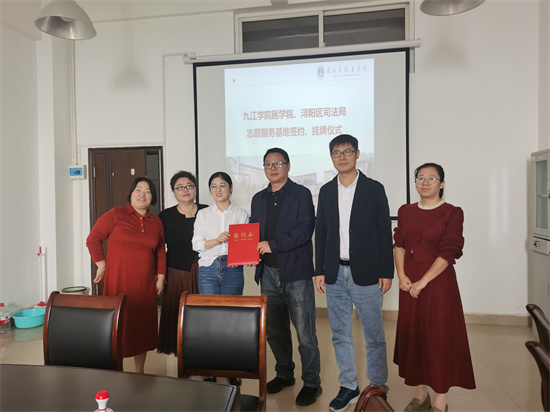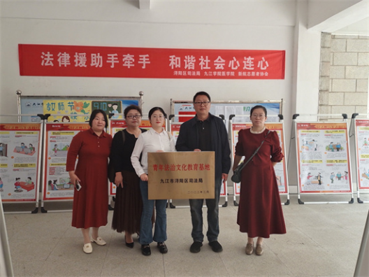 之后,医学院党委副书记刘频健与浔阳区司法局崔晨芳进行了志愿服务基地签订,并完成了“青年法治文化教育基地”授牌仪式。同时,双方就志愿服务宣传内容进行交流,并对志愿活动的常态化开展提出相关期望。