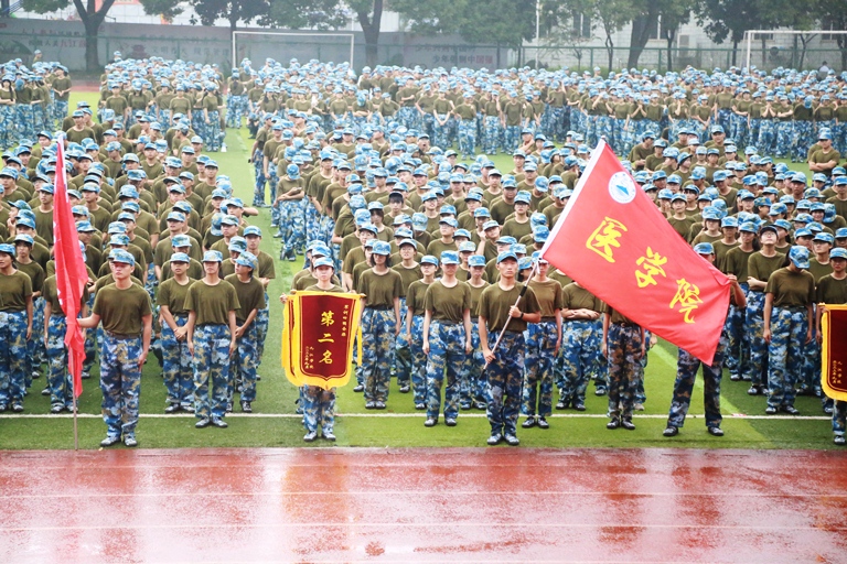 9月23日上午,我校2023级新生军训表彰大会暨开学典礼在南区体育馆隆重举行,标志着为期14天的新生军训工作顺利完成。医学院新生们取得了会操第二名,内务第五名和第六名的优异成绩,我院刘俊博士在开学典礼上代表全体教师对新生提出了期望和鼓励。