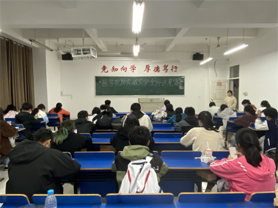 5月12日是全国防灾减灾日,为了普及“防灾减灾安全”知识,提高学生自我保护能力,助力建设平安和谐校园。4月27日晚,医学院于义丰楼506、507举办了以“牢筑安全意识,共建平安校园”为主题的全国防灾减灾安全知识竞赛初赛。本次活动由学生会办公室主办。