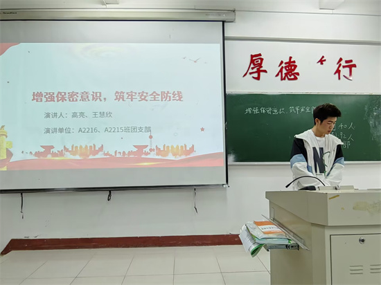 A2212班在义丰楼306开展此次团日活动。团支书首先通过保密工作公益宣传片引出活动主题,告诉同学们要守好安全防线,并指出保守国家秘密是每个公民的法定义务,共筑保密防线,公民人人有责。同学们纷纷表示要保守国家秘密,为维护国家安全贡献自己的力量。