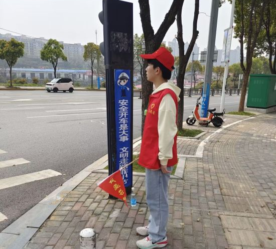 活动开展当日,志愿者们提前在南门门口集合。在负责人的带领下,志愿者们分两批前往不同的方向,其中一批往天桥方向,另一批沿着街道往西门方向。本次志愿活动开展的十分顺利,志愿者们对逆行的二轮车进行吹哨劝导,提醒驾驶人员和后座人员佩戴安全头盔;对过往车辆进行挥旗示意,让行人优先,礼让行人;提醒行人按秩序过斑马线,劝阻闯红绿灯的行人。正午时分,上午批次的志愿者们有序返回学校,由下午批次的志愿者们轮班,志愿者们早早赶来南门集合,以饱满的精神姿态对待困倦的午后。志愿者们拿着旗子,手握口哨,进行文明劝导。志愿者们尽职尽责,在志愿活动期间严格遵守纪律,对他人进行劝导的同时也注重自身的文明行为。