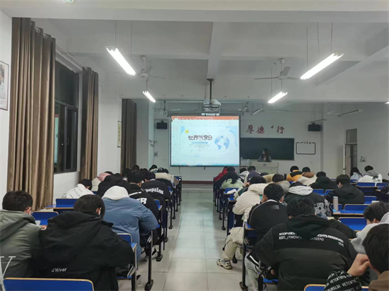 在团支书的策划下,A2015班在思贤楼507开展活动。主讲人用ppt向大家展示了当前地球气象的变化以及环境污染等问题。紧接着主讲人表示关注气象变化是人与自然和谐共生的重要体现,也是绿色低碳生活的积极践行,气象是评价大自然状况的重要窗口,作为青年应该积极学习气象知识,守护家园。活动最后,同学们就如何与自然和谐共生展开积极讨论。
