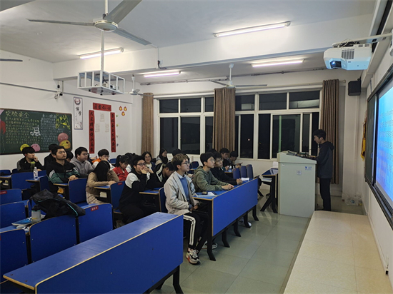 A2142班团支书组织同学们在华文楼104就相关知识展开此次团日活动。活动伊始,团支书用PPT放映和视频播放的方式,向大家介绍二十四节气是如何准确反映自然节律变化。团支书提醒大家关注预警、做好准备、及时行动,减少气象灾害对生产生活的影响。本次活动反响热烈,加强了同学们对二十四节和气象防灾减灾第一道防线的认识。
