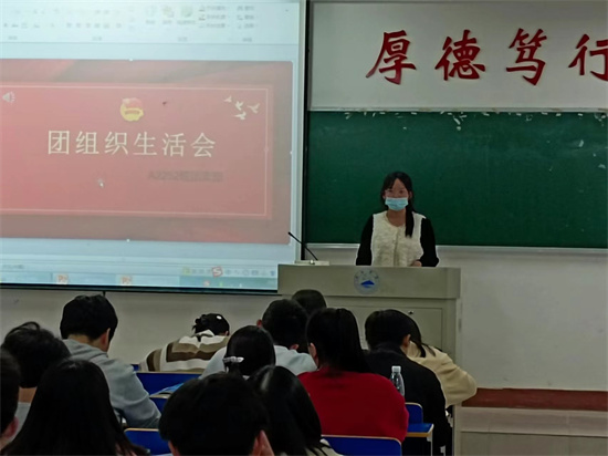 会议召开前,各班团支部提前进行了对会议详细内容和思想理论的学习,各团小组通过撰写心得体会对本次会议有了初步的认识与思考。会议伊始,全体同学起立唱团歌。随后团支部书记对团支部本年度的党史团史学习进行了汇报,尤其强调了中国共青团建团100周年的光辉历史和党的二十大精神学习的重要意义,并结合团支部工作和个人实际,提出对青年团员的期望和要求,明确青年团员的职责使命和努力方向。各团小组组长针对各组情况进行总结发言,以对组员进行点评的方式展现出各小组成员朝气蓬勃、奋发有为的精神面貌和思想动态。各团支部还进行了“批评与自我批评”环节,团员们立查立改、即知即改的批评态度,为认识自身、明确目标夯实了基础,保持了团组织的先进性,为团组织工作的顺利开展保障了高质量新气象。最后,全体团员起立重温入团誓词,本次团组织生活会圆满结束。