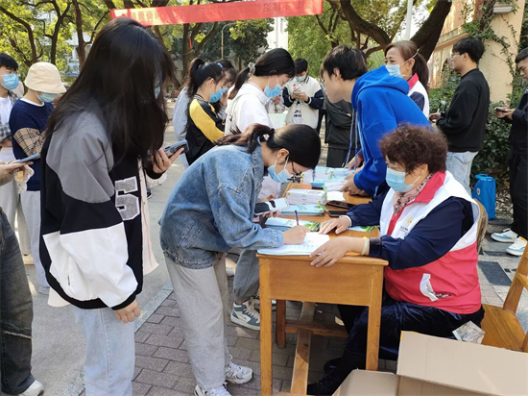 在欧风园,相关志愿者的引导下,同学们扫码登记,关注微信公众号“中国人体器官捐献”,填写相关信息。之后,由人体器官捐献登记志愿者童建辉同学带领大家宣读了志愿誓词,同时,同学们在志愿书中签下了自己的姓名。疫情期间,所有人都佩戴口罩参与本次活动,但是口罩也抵挡不住同学们签下遗体器官捐赠志愿书时的铮铮誓言。
