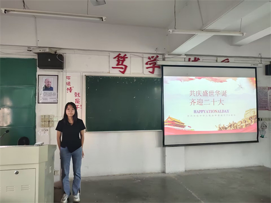 在华文楼阶梯三教室,A2142班开展了本次团日活动。活动中,团支书带领同学们详细了解了国庆节的由来以及其特殊的意义,并且以小组的形式回顾了建国以来我国经历的艰难磨难和取得的辉煌成绩。最后大家就即将迎来的党的二十大展开讨论。