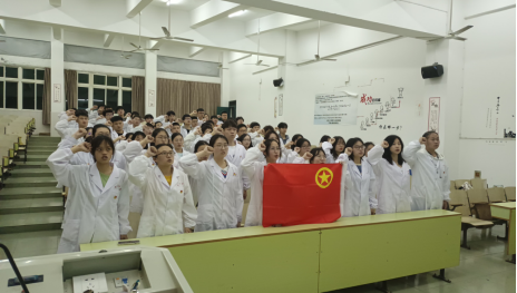 在宣誓中坚定理想信念:5月4日,医学院组织学生积极开展了入团宣誓和医学生宣誓活动。在入团誓词中重温青年团员为共产主义事业奋斗的责任使命,在医学生誓言中感悟守护人民健康的初心使命,激励着青年医者始终要坚定理想信念,医心向党,建工新时代。