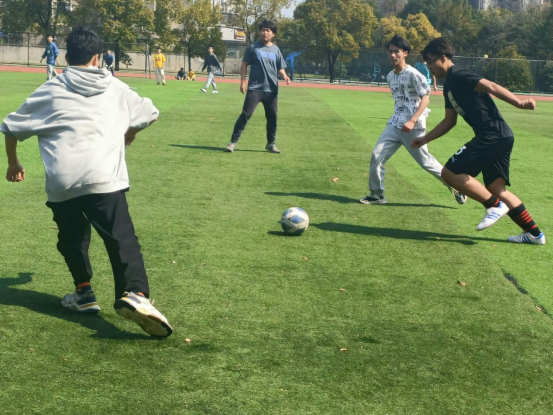 双方球队奋力追跑的身姿,脚下过人的球技,队友间传球的默契,守门员鉴定专注的眼神,青春似火的他们传递的不仅是球类,更是对彼此的信任与坚定。观看比赛的同学们也激情呐喊、热情助威,加油声此起彼伏,紧张激烈的赛场上,两班同学也赛出了成绩,赛出了水平,赛出了新风采!