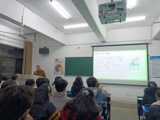 讲座伊始,胡武昌院长讲解了“向光出发,向阳而行”心理健康内容,胡院长向同学们介绍了心病所出现的原因,并解释了高校心理疾病多发的原因,分析了七情六欲的概念,使同学们更好地理解情绪。胡院长还讲授了关于心理问题和心理障碍的区别,借用马斯洛需要层次理论讲述了一些可以帮助同学们走出心理不适的问题,通过认真思考这些问题以达到明确自身走出阴影的目的。