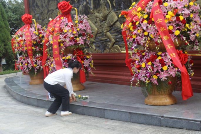 9月30日10点,同学们准时到达南山公园,在南山公园正门口拍集体照留念。随后所有同学前往烈士纪念墙,举行祭奠仪式,本次仪式由医学院团总支副书记沙雪璐同学主持,随后宣布仪式开始,沙雪璐同学朗诵悼念词,悼词中写到他们用不畏牺牲的精神和义薄云天的情怀,谱写了一曲曲可歌可泣的英雄赞歌,塑造了一座座永垂不朽的历史丰碑。随后全体同学默哀一分钟,同学们依次轮流为革命先烈献花,朵朵鲜花中包含着同学们对革命先烈的敬仰。最后同学们一起参观了革命烈士纪念馆,学习了先烈们的革命精神。