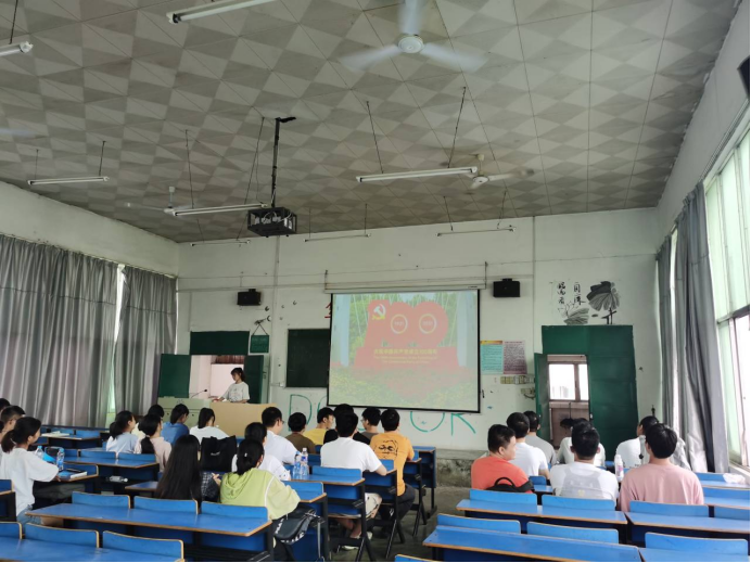 A2042班于思贤楼阶梯教室五开展了此次活动。团支书杨静向同学们深入讲解了习近平总书记在庆祝中国共产党成立100周年大会上的重要讲话,并告诉同学们要牢记习近平总书记的谆谆教诲,继续发扬五四精神,勇于担当尽责,以实现中华民族伟大复兴为己任,不负祖国和人民期待。之后,杨静带领全体同学坚定地表达了“请党放心,强国有我”的誓言。活动的最后,杨静还组织同学们即兴发言,结合自己的学习经历和个人成长历程分享团日活动心得体会。