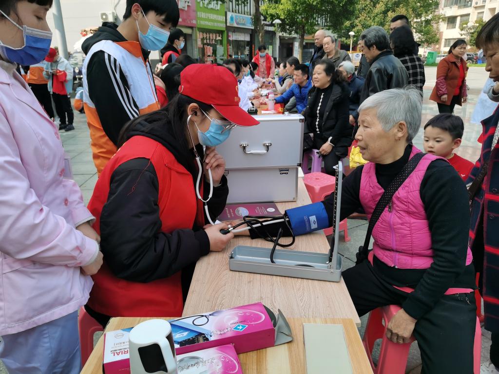 为了关照城乡居民健康,增强居民健康保护意识,yl23455永利集团杏林公益志愿者于3月14日参加了九江市义工联和第一人民医院在九江市慧龙新城社区开展的义诊服务活动。