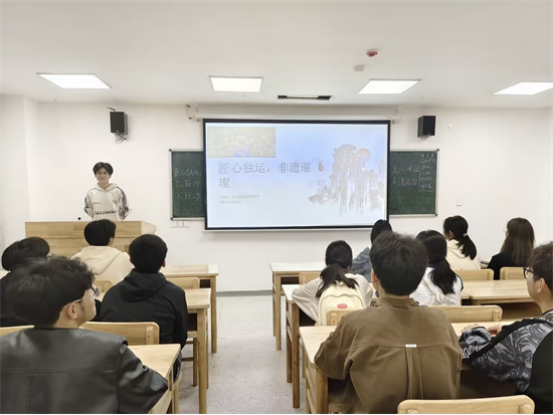 在研究生楼431,医学A2361班团支书通过PPT讲解,带领同学们学习非遗文化的相关知识。赵丽萍同学表示:“非遗文化的传承与保护是我们每一个人的责任。现代化进程的冲击、市场竞争的压力、年轻一代对非遗的陌生等因素,使得非遗传承陷入困境,因此,我们需要更加关注和支持非遗传承。同时,我们也要积极宣传非遗文化,让更多的人了解非遗、热爱非遗、传承非遗。”