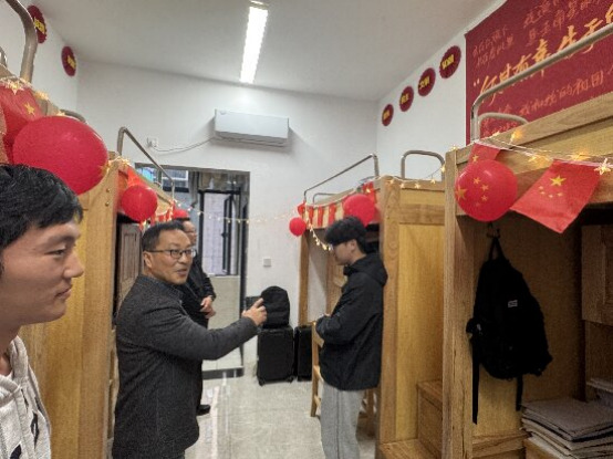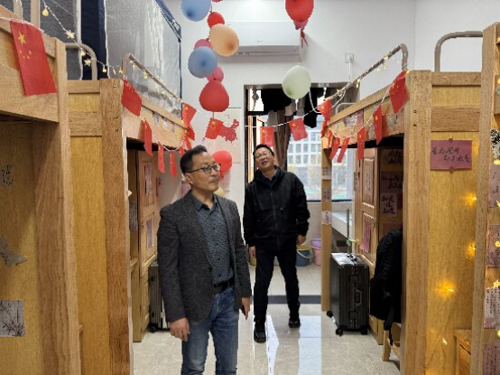 为进一步加强寝室文化建设,丰富同学们的课余生活,营造良好的学习和生活环境,近期yl23455永利集团组织开展了“‘宿’说青春,‘寓’见美好”寝室文化节活动。11月12日,院党委书记张辉、副书记刘频健参观指导学生寝室文化建设开展情况,大一年级辅导员刘海军陪同参观。