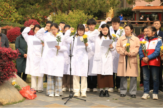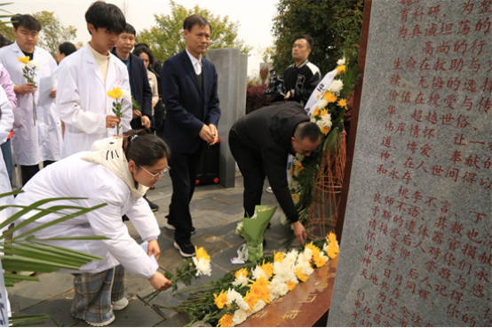 活动最后,全体人员依次向纪念碑敬献鲜花并三鞠躬,表达对捐献者的缅怀与敬意。医学生们纷纷表示,通过此次活动,他们更加坚定了“以人类健康为己任”的信念,未来将以更加严谨的态度学习医学知识,用实际行动践行“无语良师”的精神传承。