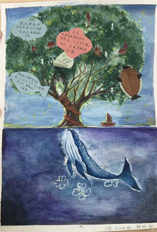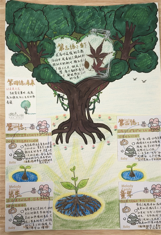 本次活动以征集创意海报为载体,鼓励学生围绕“生命意义”展开深度思考,通过艺术创作传递对生命的理解与感悟。活动以“生命之树”为核心意象,结合个人对生命独特性的思考,用便利贴书写心声并融入图形设计中,创作出一幅幅兼具视觉美感与情感温度的作品。例如,有同学以根系象征生命的坚韧,用不同颜色的叶片代表成长的多样经历;有同学将心脏图与树枝结合,寓意生命与自然共生的律动;还有同学以折纸蝴蝶点缀树冠,表达破茧重生、向阳而生的希望……这些作品不仅展现了丰富的想象力,更体现了学生对生命价值的深刻思考。活动期间,yl23455永利集团权益部共收集作品若干,经过班级心理委员收集及部门成员评选,最终评选出9份优秀作品进行公示。