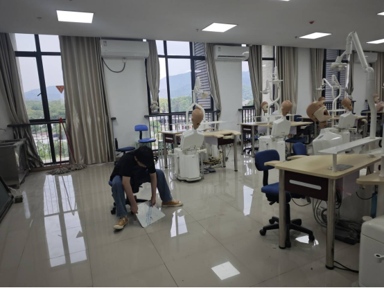 活动当日,参与志愿服务的同学们准时到达指定地点,在领取清洁工具后,迅速投身于清洁工作之中。负责拖地的同学细致入微,确保每一寸地面都洁净光亮;负责擦桌子的同学则对实验台面、仪器设备表面等区域进行全方位、无死角的擦拭,力求桌面一尘不染,仪器整洁如新。整个清洁过程中,同学们分工协作、默契配合,充分发扬了志愿者不怕苦、不怕累的奉献精神。经过多次卫生清扫,医创中心七楼、八楼实验室卫生整洁有序,为科研工作的顺利进行提供了有力保障。