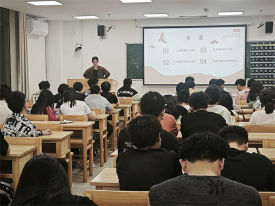 在教学楼B502,基础A2422班团支书蔡若梅同样采用 PPT 的形式为大家进行了细致讲解。本次讲解以沉浸式知识学习为核心,通过组织同学们观看《觉醒年代》中与五四相关的经典片段,生动重现了那段波澜壮阔的历史画卷,让同学们深刻感受到了先辈们滚烫的爱国热忱与不屈的奋斗精神。在交流环节,同学们积极分享各自的青春理想,并结合自身专业深入探讨如何将个人成长融入国家发展的宏伟蓝图之中,现场氛围热烈且富有成效。