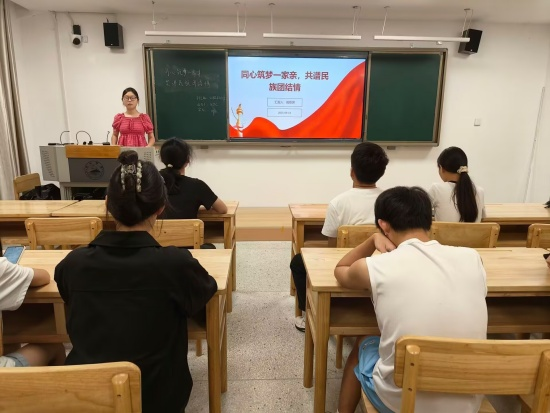 活动中,口腔A2411班于教学楼(一)B504召开主题学习活动。团支书舒艺在会上表示:“中华民族是56个民族共同组成的命运共同体。筑牢共同体意识,不仅是实现民族复兴的必然要求,也是我们每一名青年学生的责任。”她结合对口支援、乡村振兴、灾难共抗等生动实例,阐述了“民族团结一家亲”的深刻时代意义,鼓励同学们从尊重不同风俗、参与文化交流等日常行为做起,争做民族团结的积极践行者。