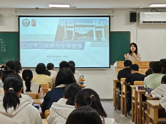 为加强新生专业知识学习教育,帮助2025级新生树立整体医学观念,yl23455永利集团于10月17日晚18:30在研究生楼121教室组织开展了“口腔常见疾病与全身健康”专题讲座,特邀武汉大学口腔医院医生李宇红主讲,2025级预防医学与康复治疗学专业全体新生参加此次讲座。