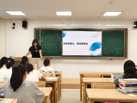 在研究生楼330,A2341班团支书彭瑾昱通过PPT系统梳理了辛亥革命的历史脉络与时代价值。她以互动讨论和案例分享的形式,引导同学们思考如何将辛亥革命精神转化为实际行动,鼓励大家在学术探索中勇于突破,在志愿服务中主动作为。活动现场气氛热烈,同学们都踊跃交流着对青春担当的理解与规划。