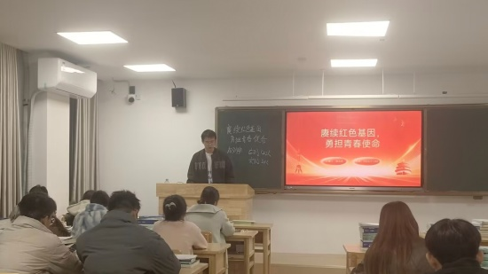 研究生楼432教室,基础A2511班团支书熊旭宇结合长征精神以及黄继光、雷锋等英模事迹,系统阐释了红色基因的内涵与时代价值。在此基础上,班级还开展了“新时代青年如何作为”主题讨论。同学们明确,唯有将勤学苦练与创新探索相结合,才能用实际行动践行青年一代的初心与使命。