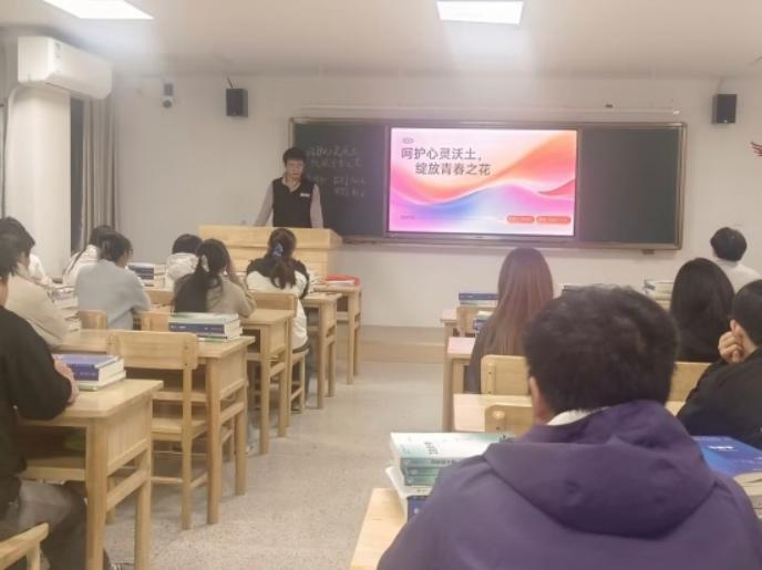 在教学楼B504教室,口腔A2412班团支书高恩琪从如何提升自我关怀能力、心理健康行动倡议等方面,系统讲解了心理健康相关知识。活动通过互动分享的形式,让同学们在交流中学会沟通协作,有效增强了同学们的自我认同感,提升了其应对学业与生活挑战的信心,为他们的青春成长筑牢了心理底气。