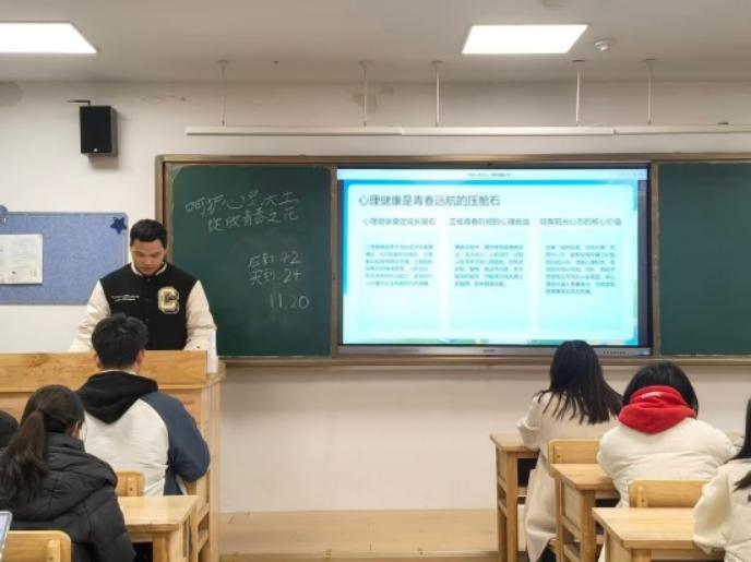 A2351班团支书彭石云在研究生楼332教室,组织了一场内容充实的心理健康活动。活动通过案例讲解、团体游戏和交流分享等形式,帮助同学们掌握了心理调适技巧,有效释放了压力、增进了彼此信任。最后彭石云倡议全体成员要关注心理健康、积极拥抱青春。活动在温暖氛围中圆满结束。