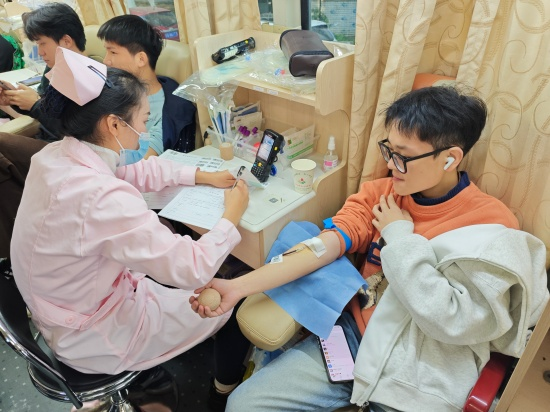 在启动仪式结束后,带队老师按预先分组引导学生有序前往信息登记、健康体检、采血区、个休憩补给区四个点位完成献血。现场涌动着互助友爱的暖流。我院既有文鸿浩这样每年义务献血的“爱心老将”,以持续的奉献诠释责任担当;也有赵宇熙、朱旭亮这样首次献血的“青春新人”,以勇敢的尝试传递公益初心。大家纷纷表示,能以自身热血为生命续航,为社会分忧,是一份无比珍贵的体验。